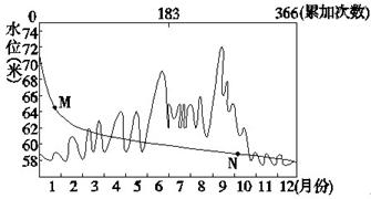 ①过度放牧致使草场涵养水源、调节径流的功能下降 ②围湖造田导致湖泊调蓄洪峰的能力降低? ③过度砍伐、开垦山地,地表覆被减少,水土流失加剧? ④城市化面积扩大,加大了地表径流量和径流汇集的速度 A.①② B.③④ C.①③ D.②④ 2、单选题 水位是指河流某处的水面海拔高度,一年中等于和大于某一水位出现的次数之和称之历时。读下面水位过程线与历时曲线图,回答问题。 |