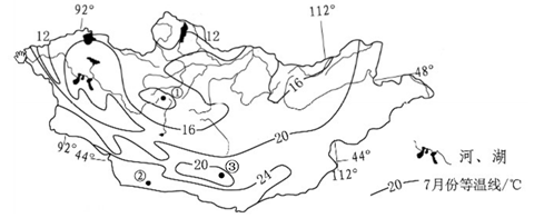 4、单选题 读亚洲某内陆国家七月等温线分布图,回答问题