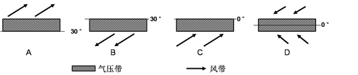 【小题4】下列风带图中,表示北半球信风带的是(   )