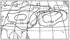 4、单选题  下图为世界部分区域海平面等压线(单位:hpa)分布图。据此回答下列问题。