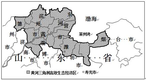 1、综合题 (28分)我国在黄河三角洲打造高效生态经济区,该生态经济区包括山东东营市、滨州市全部及潍坊市、德州市、淄博市、烟台市部分地区,约占山东全省面积的六分之一。根据材料,结合所学知识,完成(1)—(5)题。