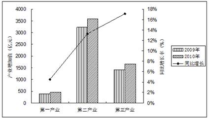 材料三:黄河三角洲高效生态经济区三大产业增加值和同比增长图