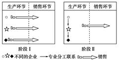 小题1:阶段Ⅰ,不同企业之间生产和销售环节都互不联系,说明没有进行专业分工,也不是合作的关系;