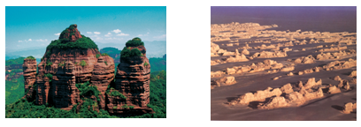 1.形成图示雅丹地貌和丹霞地貌的主要外力作用分别为