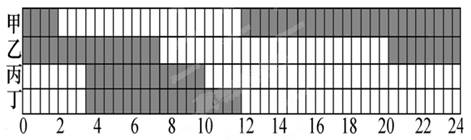 4、单选题 第30届奥运会于英国伦敦夏令时(比标准时间快一小时)7月27日20:12开幕,下图是开幕当日四个城市的昼夜长短分布示意图,图中阴影部分表示黑夜。读图,完成下列各题。