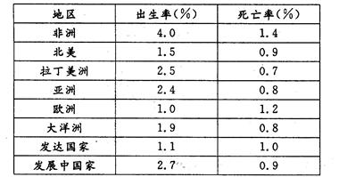 下表为1997年各大洲及不同国家的人口出生率和死亡率数据。