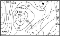 1.若图中出现锋面天气系统,则锋面出现的位置及锋面的类型是2.有关图中现象叙述正确的是