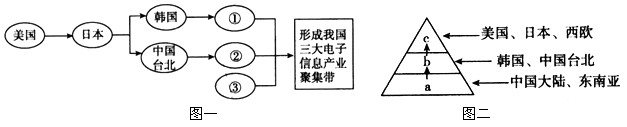 1、图一中,我国承接全球IT产业转移路径①的地区是