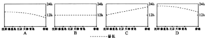 2、单选题 下图中能正确表示29届北京奥运会举办期间某天赛场城市的昼夜长短变化的是(?)
