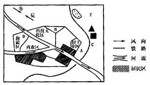 (2)工业区是城市的主要环境污染源,故应考虑风向、河流流向和其他经济效益等