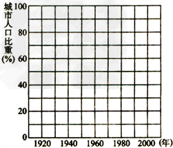 (1) 在下图中画出1920年至2000年发达国家(用实线表示)和发展中国家(用虚线表示)城市人口比重变化的折线图。