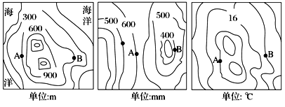 4、单选题 读北纬52°某地附近的相关等值线图,回答下列各题。