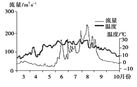 (2)简述图示河流最小流量出现的时间及其原因。(8分)