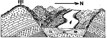 1.有关图中地形的成因,正确的说法是2.图中甲山脉如果是秦岭,则下列说法正确的是