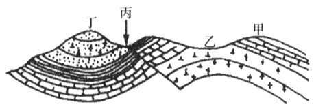 (1)图中丁处地质构造名称是______________,地貌名称是____________________。