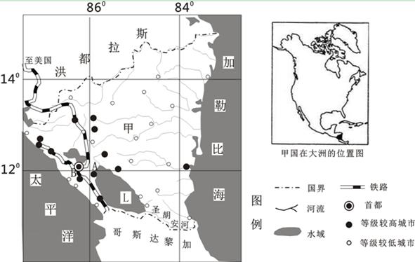 A.市场 B.原料 C.劳动力 D.技术 参考答案: 本题解析:本题考查工业区位因素分析及读图分析能力。 本题难度:一般 3、综合题 材料一:下图是甲国地图。甲国是美国重要的服装进口国,服装生产中心在A城;首都B城是该国重要的工业中心,纺织、食品、制糖是其主要工业部门。 参考答案: 本题解析: 本题难度:一般 4、单选题 读下图,回答下列问题 |