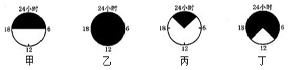 5、单选题 下图为12月22日甲乙丙丁四个城市昼夜长短示意图(阴影部分表示黑夜)。读图完成下列问题。