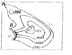 4、单选题 读“某地区等高线地形图”,回答: