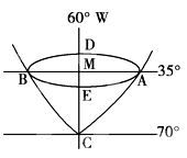 【小题1】从B地到A地飞最近的路线,就是B地与A地之间的球面最短距离。以球心为圆心,过BA两点的大圆上的弧线就是他们之间的球面最短距离。图中