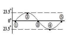 (2)当阳光射入室内面积达一年中最小值时,地球位于右图中______(填数字)处附近,此时地球公转速度较?。此时淮阴气候特点是 。