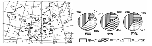 材料三:我国三个经济区域产业结构比较
