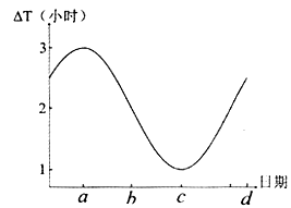 5、单选题 若不考虑地形和天气,甲地比乙地(Oº,60ºE)总是先看到日出,△T表示某日甲地与乙地日出的时间差。下图示意△T的年变化曲线,读图完成下列各题。