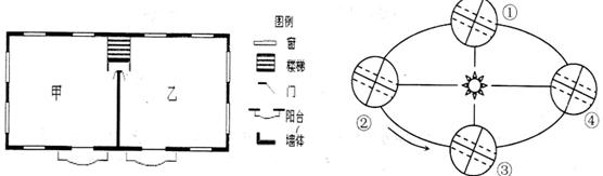 2、综合题 下面左图是某房地产公司在抚顺市开发的一梯两户式商品房平面图,右图为地球公转示意图,分析回答下列问题。(8分)