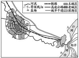 A.①处 B.②处 C.③处 D.④处 参考答案: 本题解析: 本题难度:一般 3、单选题  读“我国东部沿海地区的某城市示意图”,完成小题。  |