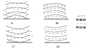 【小题2】能正确表示甲地近地面在垂直方向上等温线与等压线关系的图示是( )