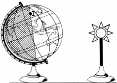 3、单选题 将一盏电灯放在桌子中央代表太阳,在离电灯大约l米远的桌边放一个地球仪代表地球,拨动地球仪模拟地球自转运动。读图回答题。