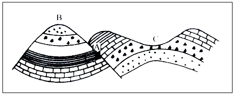 3、单选题 下列岩石中常能找到古生物化石的是 4、填空题 下图为我国东南沿海某区域等高线图,读图回答下列问题。(10分) 5、填空题 下图是某地地层剖面图,读图完成下列要求(每空2分,共20分): |
