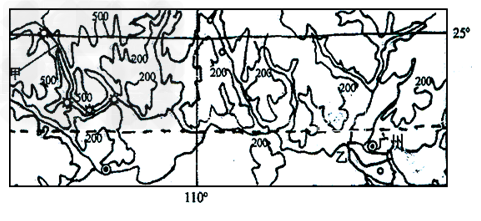 (1 )图中东部地区的总体地势特征是___________________________ ,判断依据是:___________________________ 。 (2 )分析图中甲、乙两处河流的河床横剖面特征及成因: ______________________________________________________。 (3 )广州亚运会选在11 月份举行。这期间阴雨天气较少,试分析原因: ______________________________________________________。 (4 )分析广州城市发展的有利区位: ______________________________________________________。