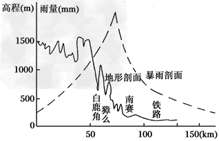3、单选题 邢台市地处河北省南部,太行山脉南段东麓,华北平原西部边缘,下图为邢台地区的一次特大暴雨剖面图,读图完成1—3题。