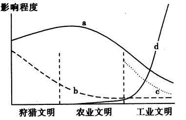 2、单选题 读人类文明进程及社会经济增长主导因素变化示意图,完成1~2题。