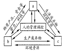 1.根据图示b系统能提供物质产品和资金,其排放生产废弃物,故判断为经济系统。而a表示社会系统;c表示生态系统。