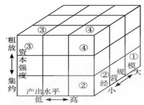 小题2:图中②特征为集约农业,生产规模小,但是产出水平高。日本地形以山地丘陵为主,农业生产的规模小,但是机械化水平高,产出水平高。所以本题选择C选项。