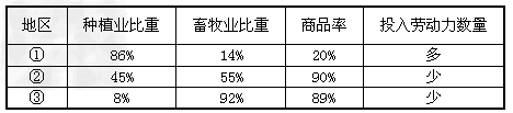 A.大面积的开垦耕地 B.发展大型农业机械,提高机械化水平 C.改变经营方式,扩大农场规模 D.发展农业科技,提高单位面积产量 参考答案: 本题解析: 本题难度:简单 2、单选题  读几个地区农业基本情况比较表,回答1—3题。? 参考答案:1、A 本题解析: 本题难度:一般 3、综合题  读下面材料,回答下列问题。  |