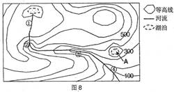 A.2.1℃<ΔT<2.2℃ B.2.2℃<ΔT<2.3℃ C.2.3℃<ΔT<2.4℃ D.2.4℃<ΔT<2.5℃ 2、综合题 读某地等温线图,回答问题。 3、单选题 读图8,完成问题。 |