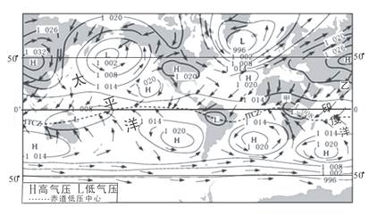 (3)7月份,潮湿的西南风控制乙地区,使该地区进入雨季。试从气压带风带移动的角度分析该盛行风的形成过程。(2分)