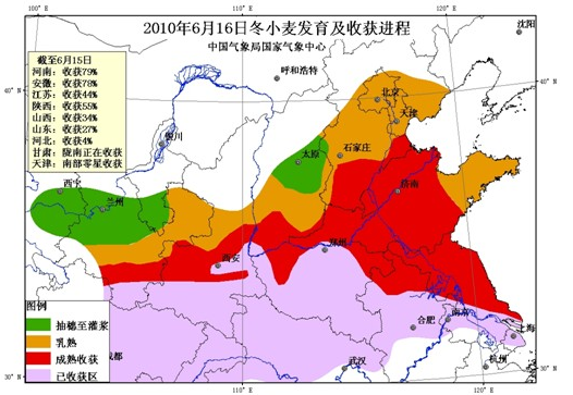 4、单选题 读2010年有关我国冬小麦麦收时间及状况的信息图,回题。