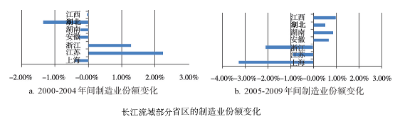 4、单选题 下图为“长江中下游各省区制造业占全国份额变化图”。导致其变化的原因可能是