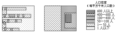1、单选题 下面是我国某两省(区)的人口分布示意图,读图完成下列各题。