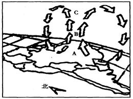 2、综合题 读该大气环流示意图(图中箭头表示空气的垂直运动),回答: