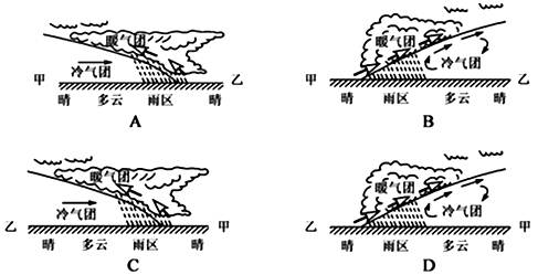 【小题2】下图中沿甲乙线所作的天气系统垂直剖面示意图正确的是( )