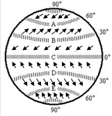 【小题1】在图一中相应位置画出南北半球的信风带和西风带的风向。