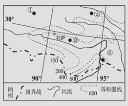 1.从图中信息判断,该区域的地势特点是2.图中①②③④四点,水热条件最好的是