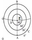 5、综合题 该图是“冬至日当天北京时间18时的太阳高度分布示意图”,图中同心圆为等太阳高度线,读后请完成下列问题。(14分)