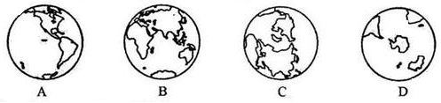 4、单选题 下列四幅图分别是东西南北四个半球,其中属于北半球的是(?)