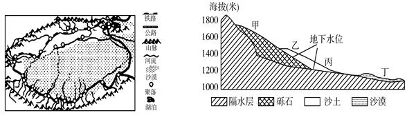 小题2:图2甲乙丙丁四地中,绿洲应分布在( )