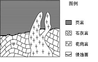 小题1:下图为某区域地质剖面示意图。图中甲地层褶皱后,该区域先后发生了